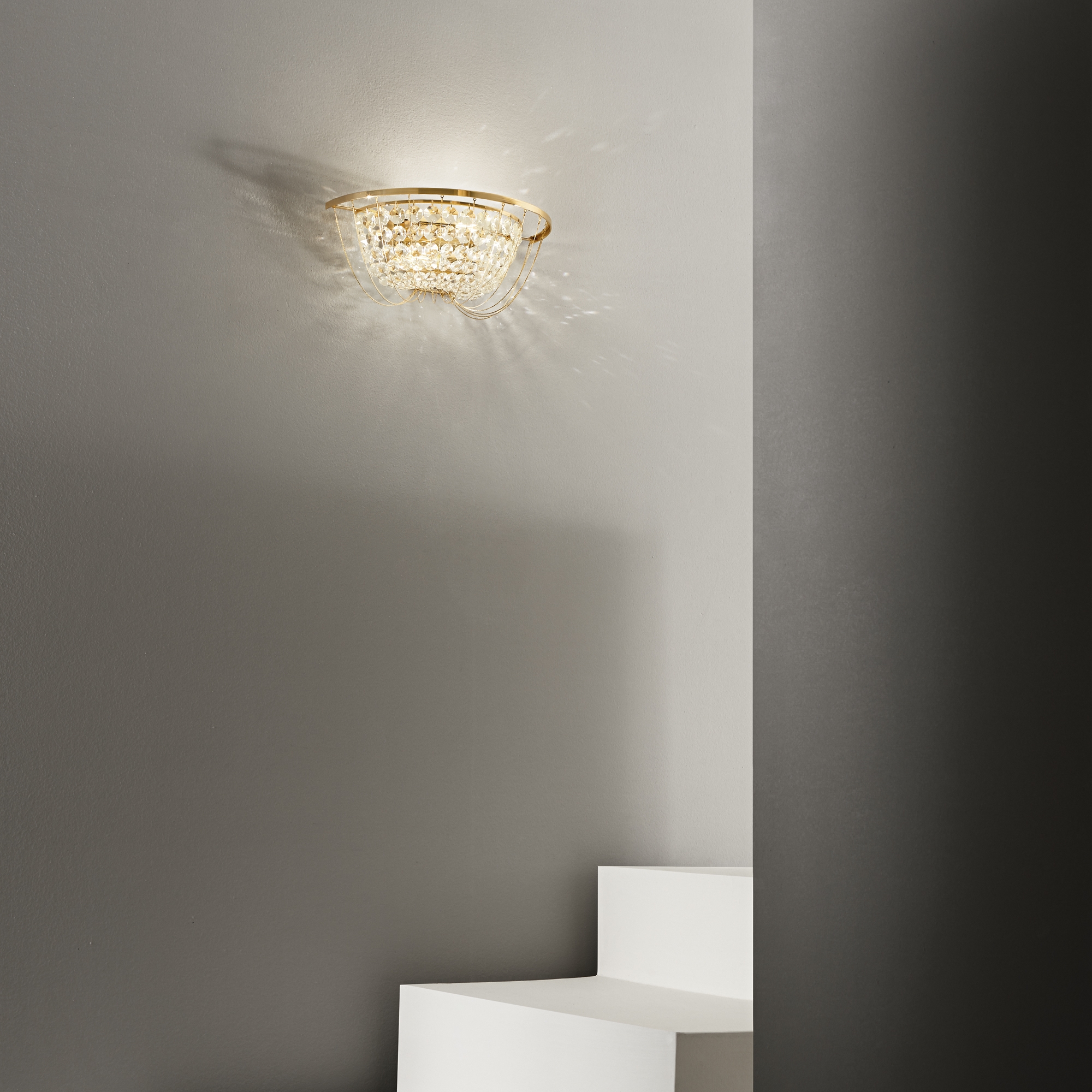 Offrez à votre intérieur l’excellence décorative avec cette Applique haut-de-gamme en cristal K9, véritable œuvre lumineuse au raffinement exceptionnel. Conçue en métal finition chrome et Or et habillée de cristaux taillés de haute pureté, elle diffuse un scintillement somptueux qui transforme immédiatement votre espace en un lieu d’exception.
