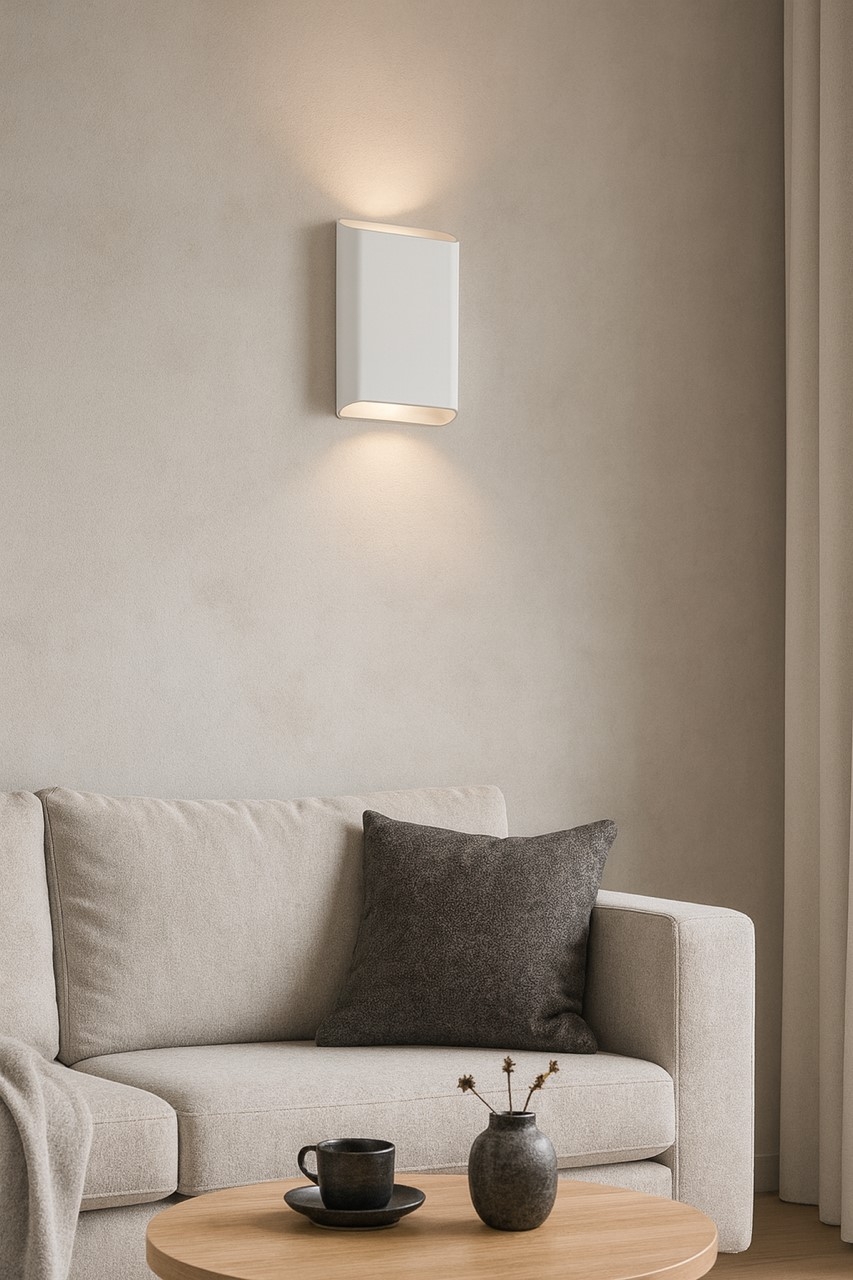 L’applique HUMAX diffuse une lumière douce, parfaite pour créer une ambiance cosy ou pour mettre en valeur un mur, un tableau ou une zone de passage intérieur.