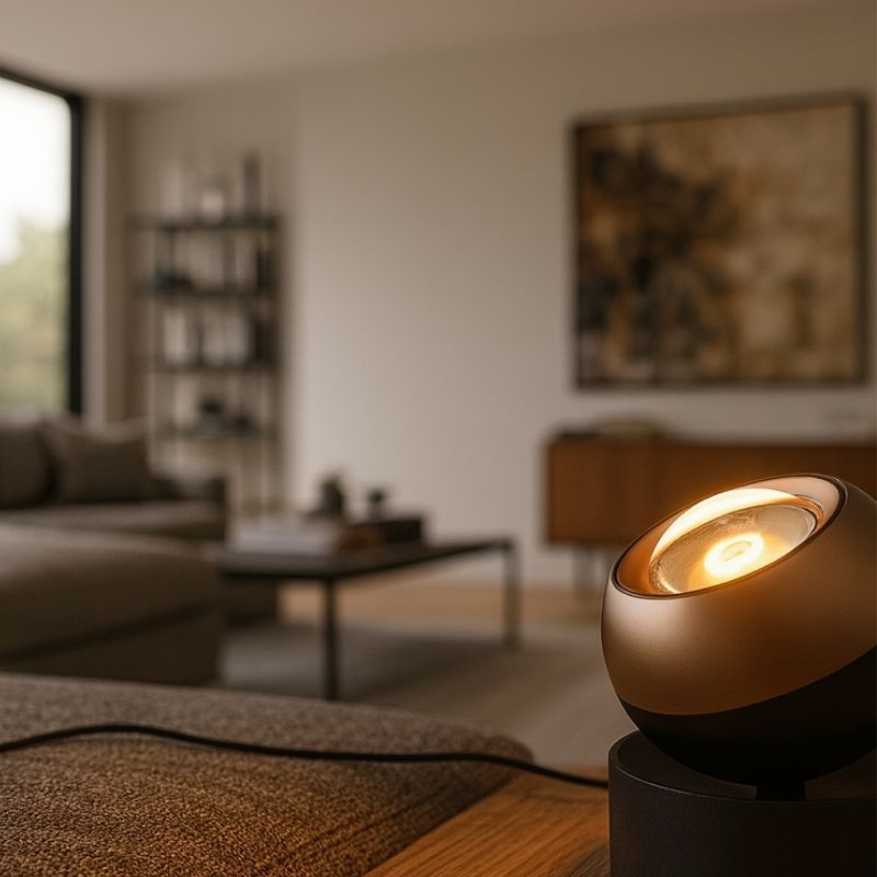 La série de luminaires ORBIT séduit par son design élégant qui attire tous les regards dans les espaces de vie. Avec son éclairage vers le haut et vers le bas, l'applique crée un arrière-plan lumineux agréable qui invite à s'attarder et à profiter. Grâce au DIP SWITCH, vous pouvez choisir parmi trois couleurs de lumière différentes directement sur le luminaire pour créer l'atmosphère que vous souhaitez. La luminosité peut être réglée en trois étapes à l'aide d'un interrupteur classique. Le design sphérique, associé à la combinaison de couleurs noir mat et café, confère à la lampe une touche de modernité et d'élégance.
