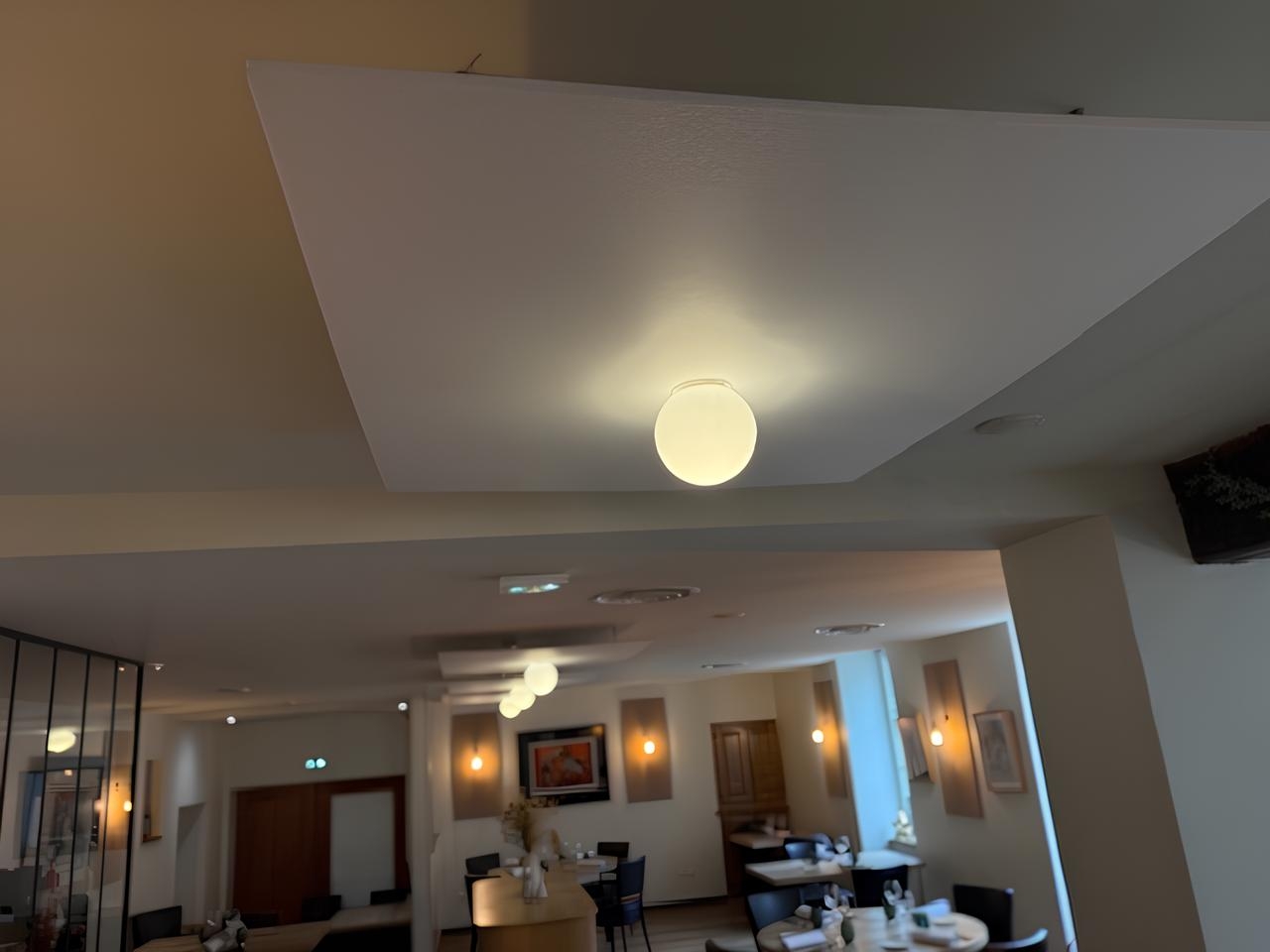 Une fois le produit fini, les clients ont installés ces luminaires acoustiques dans plusieurs zones stratégiques du restaurant. Cela a permis de :