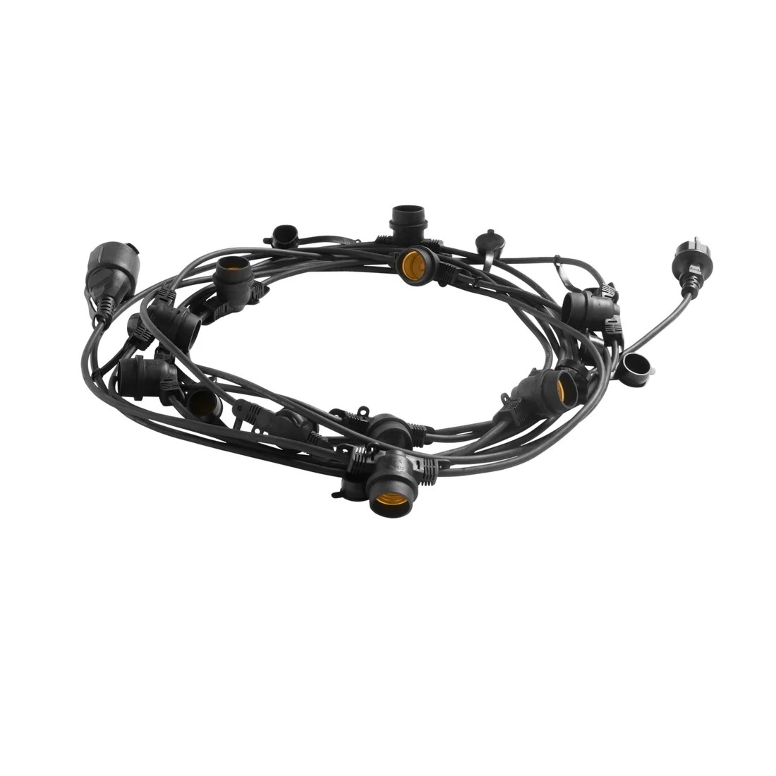 Équipée de douilles E27 étanches, la guirlande PICNIC garantit une installation sécurisée et durable. Les supports renforcés assurent une excellente tenue des ampoules tout en facilitant la fixation sur câbles, murs ou poteaux.
