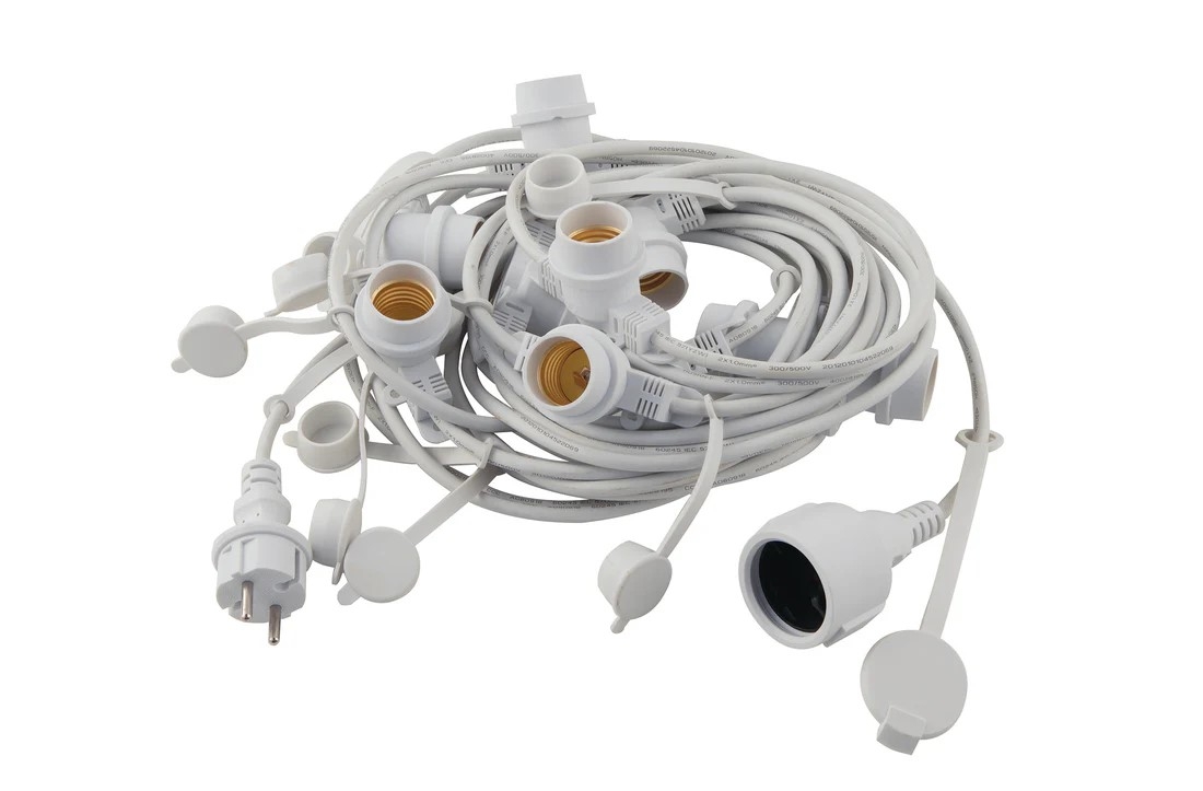 Équipée de douilles E27 étanches, la guirlande PICNIC garantit une installation sécurisée et durable. Les supports renforcés assurent une excellente tenue des ampoules tout en facilitant la fixation sur câbles, murs ou poteaux.