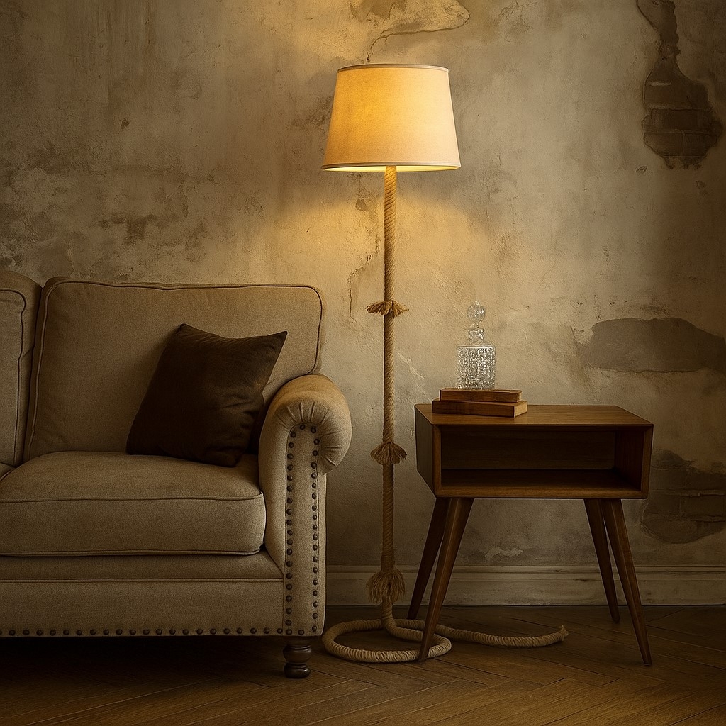 Avec son abat-jour de 38 cm et sa finition en corde naturelle, ce lampadaire est idéal pour un salon, une chambre ou un coin lecture.