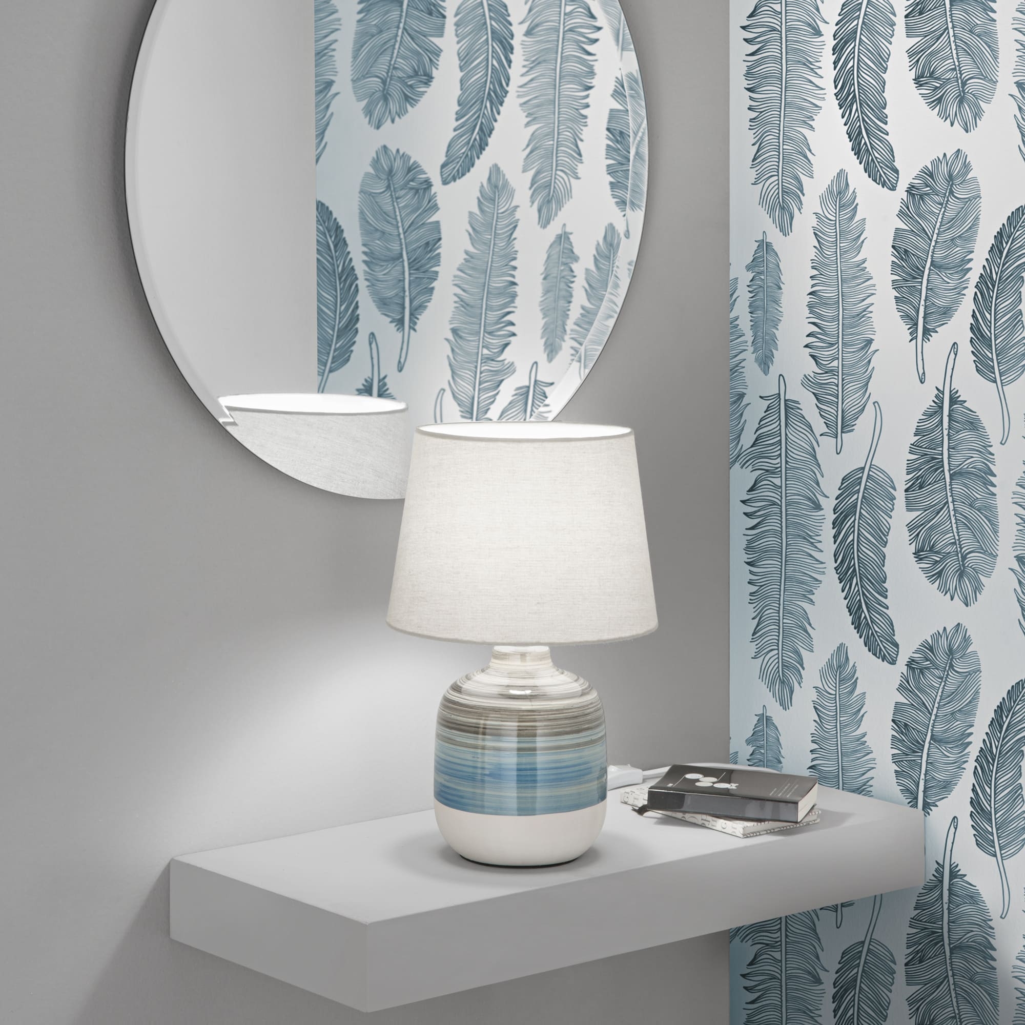 Ajoutez une touche de style à votre intérieur avec cette lampe de table à poser en céramique au design contemporain. Son pied arrondi décoré de dégradés bleus et gris apporte une ambiance apaisante, parfaite pour un salon, une chambre ou une entrée.