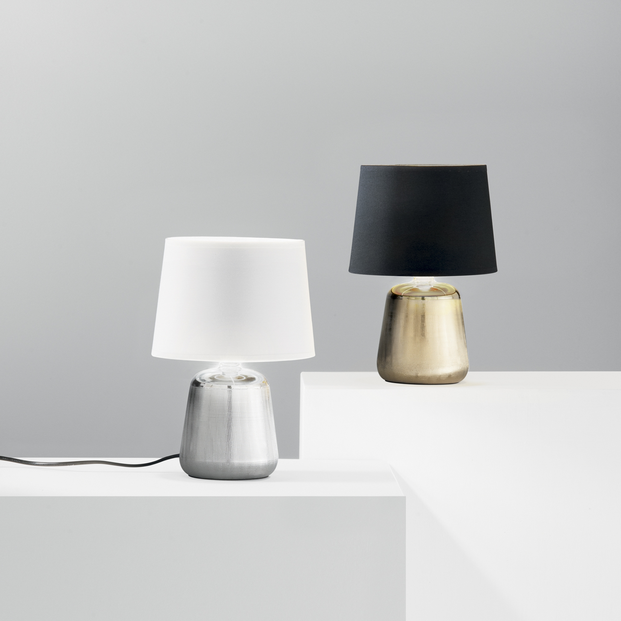 De la luminosité pour tous vos espaces de vie. La lampe à poser Ecstas garantit un éclairage unique avec sa structure en céramique dorée ou argentée et son abat-jour en tissu blanc ou noir. Profitez d'une lumière sophistiquée et exclusive qui illumine chaque recoin de votre maison avec classe et élégance.