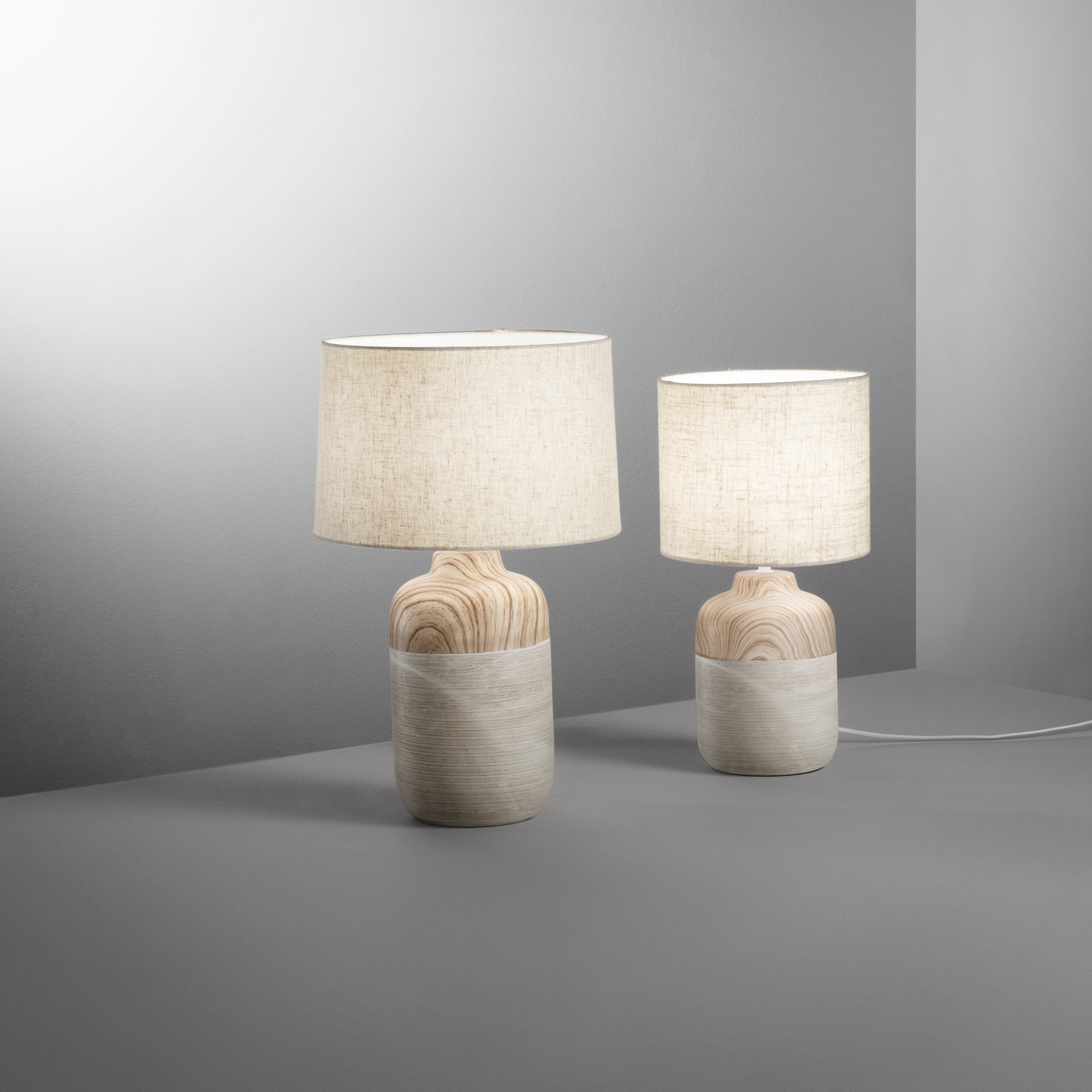 La lampe à poser WOODY allie subtilement style moderne et charme authentique grâce à sa structure en céramique effet bois naturel.