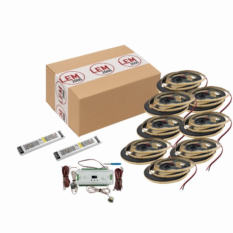 Solution complète pour éclairage escalier avec détection de mouvement et allumage progressif marche par marche. 8 bandeaux LED 10W 3000k blanc chaud ou 4000k blanc froid , contrôleur intelligent programmable, 2 alimentations 300W. Jusqu'à 16 marches. Installation professionnelle garantie.