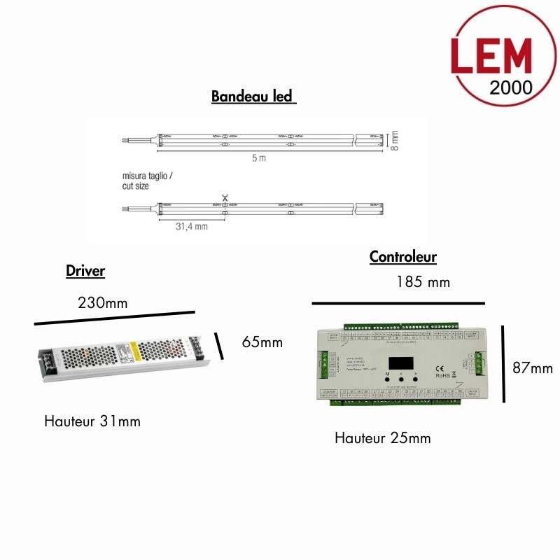 1 contrôleur intelligent programmable (max 32 marches) avec 2 capteurs + accessoires