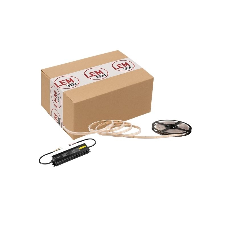 Kit bandeau LED COB 5m prêt à installer pour salle de bain ou extérieur . Lumière continue sans points lumineux. Installation facile en 15 minutes