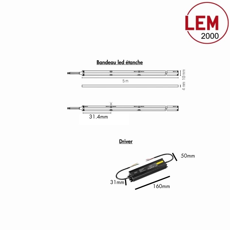Ce pack regroupe un bandeau LED COB 10W/M IP67 monochrome et une alimentation 24V 60W IP67 pour une installation complète et sécurisée.