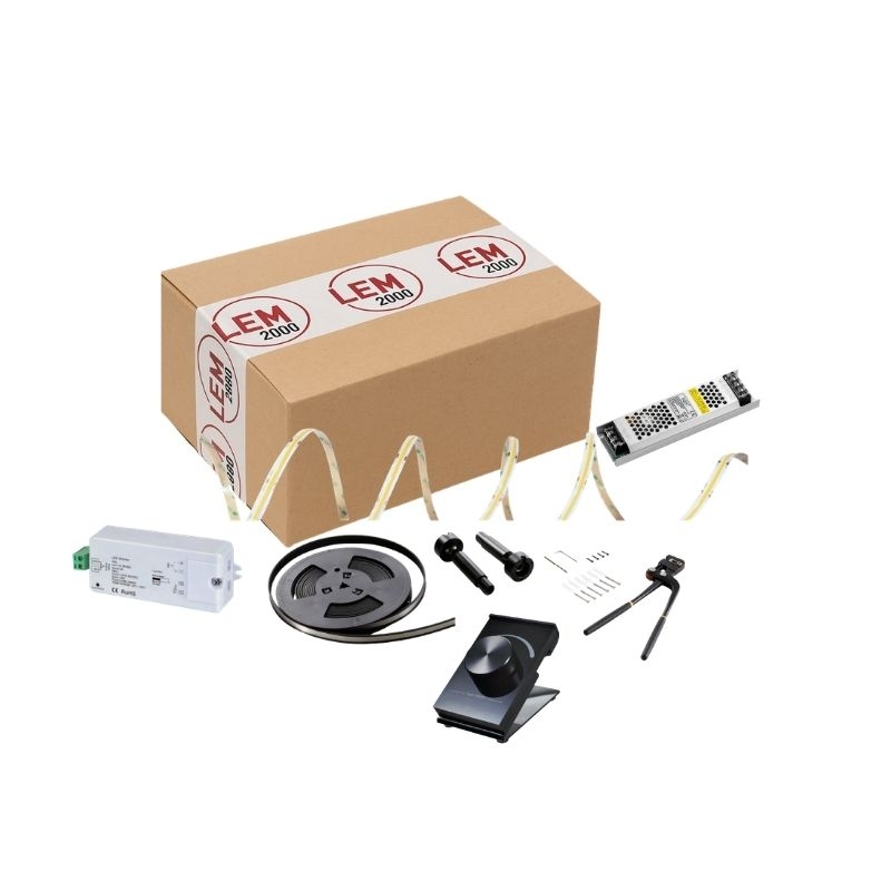 Ce pack regroupe un bandeau LED COB 15W/M 1490lm 3000k monochrome, un kit de suspension de câble acier inclinable à 45° pour un éclairage direct et indirect et une alimentation 24V 100W IP20 pour une installation complète et sécurisée.