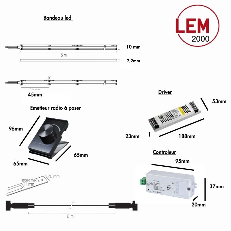 • 1 bandeau LED linéaire COB 15W 3000K (5 mètres)