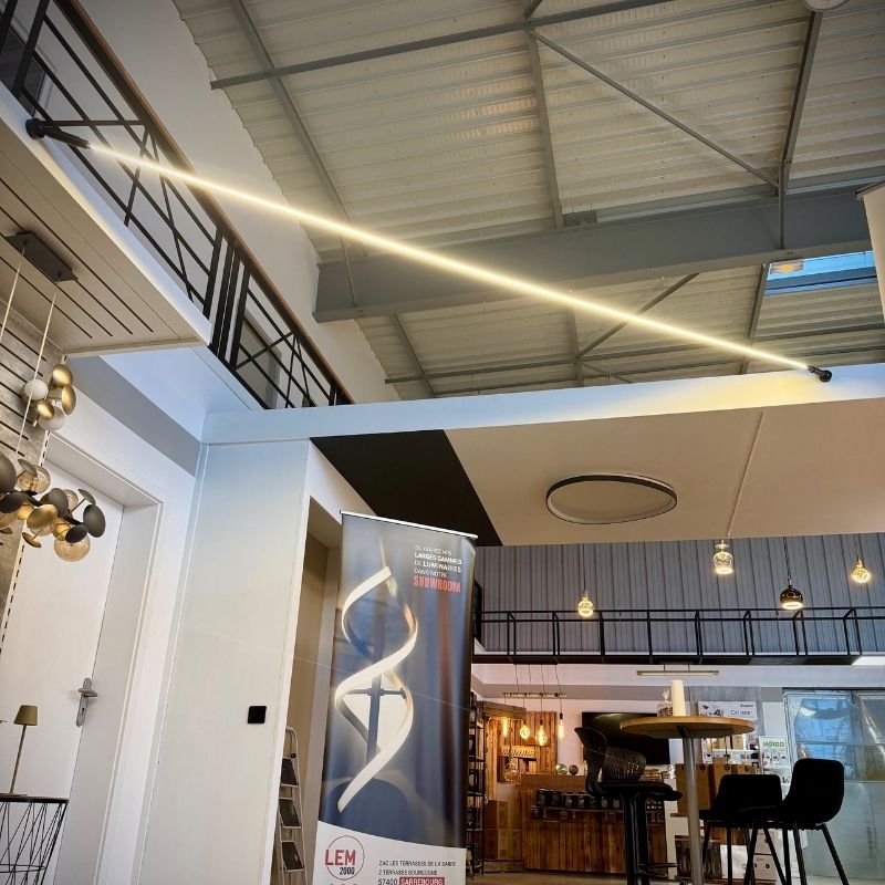 Créez une signature lumineuse spectaculaire avec notre bandeau LED linéaire suspendu de qualité professionnelle. Solution technique complète pour espaces commerciaux, bureaux design et intérieurs contemporains exigeants qui recherchent une esthétique architecturale haut de gamme.