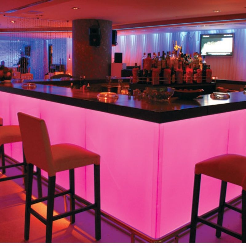 • Bar, restaurant, événementiel — Scénarios couleurs par moment (apéro, dîner, soirée), ambiance thématique événements, gestion centralisée multi-zones