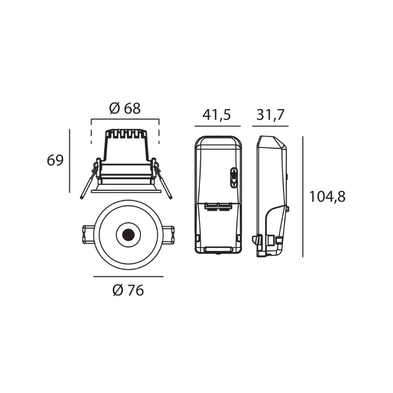 - Diamètre d'encastrement 68mm