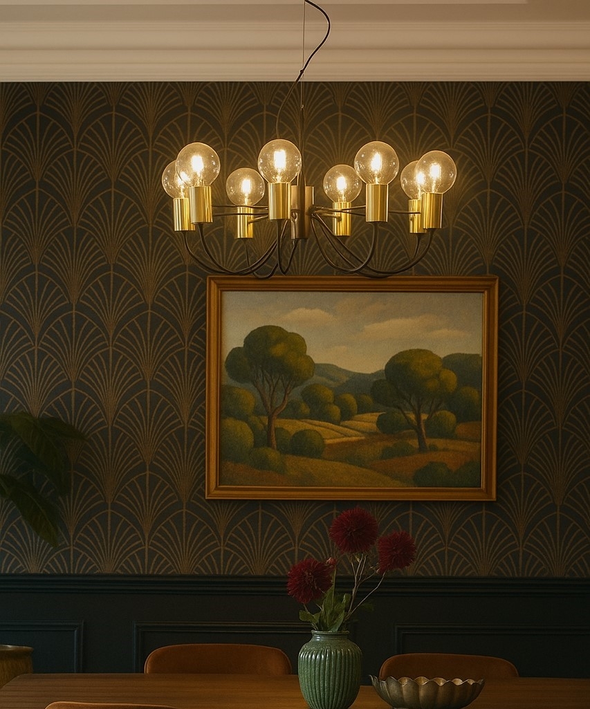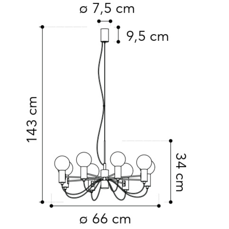 Il monte jusqu'à huit ampoules avec douille E27, maximum 60W.