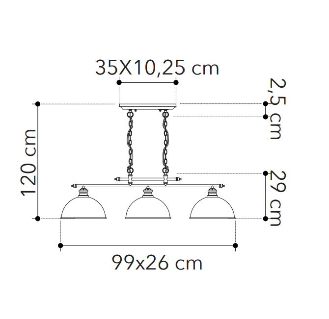 La suspension Charleston est une suspension de style industriel réglable en hauteur et installable à volonté. Un lustre simple mais en même temps de caractère, idéal pour les jeunes maisons à l'ambiance industrielle. Il monte trois ampoules avec douille E27, maximum 40W.
