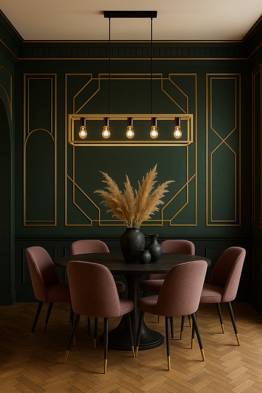 Craquez pour cette suspension Art-Déco en métal noir et doré. Idéale au-dessus d’une table de salle à manger, elle diffuse une lumière chaleureuse et crée une atmosphère raffinée et moderne.