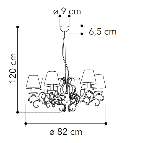 Cette grande suspension reflète pleinement un design classique et est particulièrement adaptée pour embellir l'espace de vie, tel qu'un salon ou un salon, en lui donnant une touche romantique et élégante. La décoration sinueuse de la structure métallique crée une atmosphère détendue.