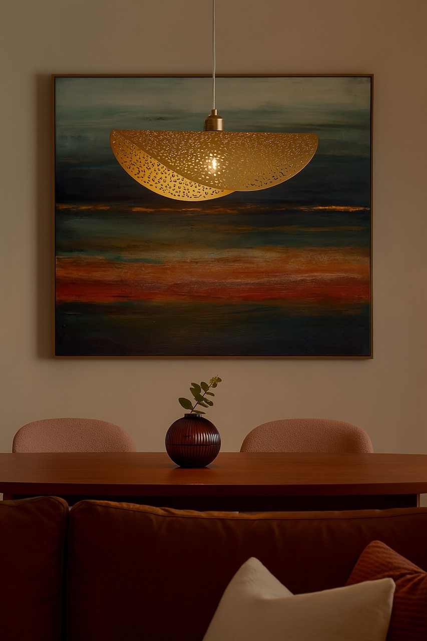 Sa finition dorée crée un effet lumineux chaleureux, parfait pour un intérieur moderne, chic ou bohème. Compatible avec ampoule E27, la suspension RHEI LEAF dorée est le choix idéal si vous recherchez un luminaire design, tendance et haut de gamme.