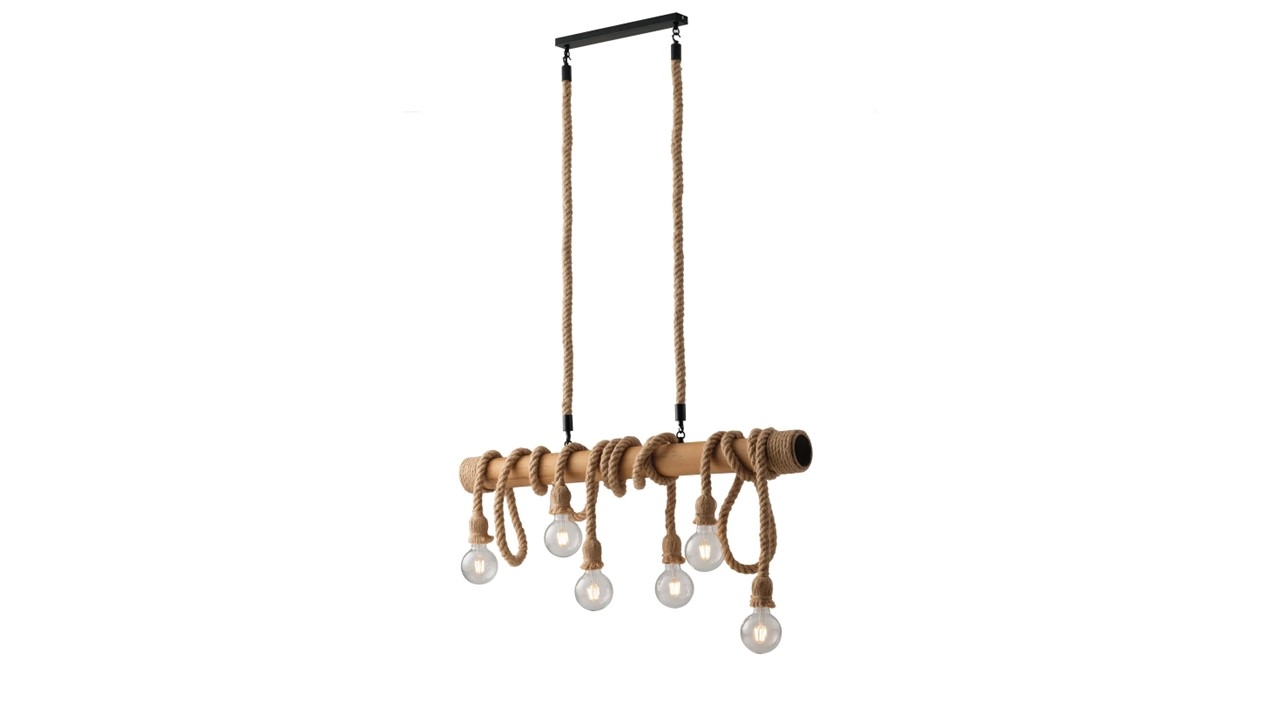 Son design en corde épaisse apporte chaleur et authenticité, tandis que ses 6 suspensions créent un effet visuel spectaculaire au-dessus d’une table à manger, d’un îlot central ou d’un espace de réception.