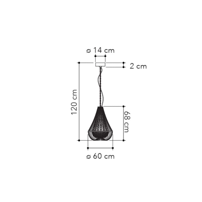 Avec un diamètre de 60 cm, une hauteur de corps de 68 cm et une suspension réglable jusqu’à 120 cm, elle s’adapte parfaitement aux grands volumes et plafonds hauts.