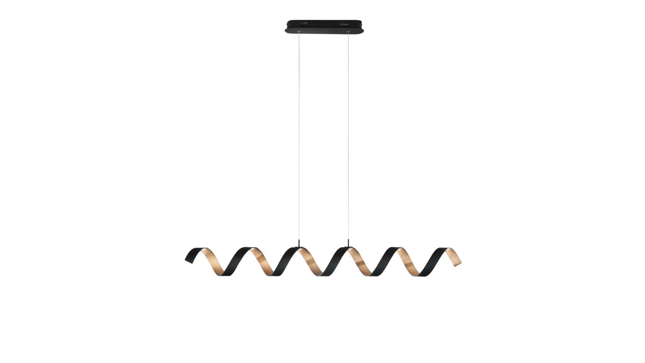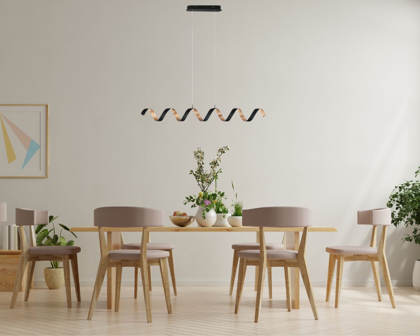 Apportez une touche contemporaine à votre intérieur avec cette suspension LED design en forme d’onde. Son ruban lumineux noir et doré de 125 cm offre un effet sculptural unique, idéal au-dessus d’une table de salle à manger, d’un îlot de cuisine ou dans un salon moderne. Réglable en hauteur jusqu’à 120 cm, ce luminaire combine élégance et fonctionnalité en diffusant une lumière douce et uniforme.