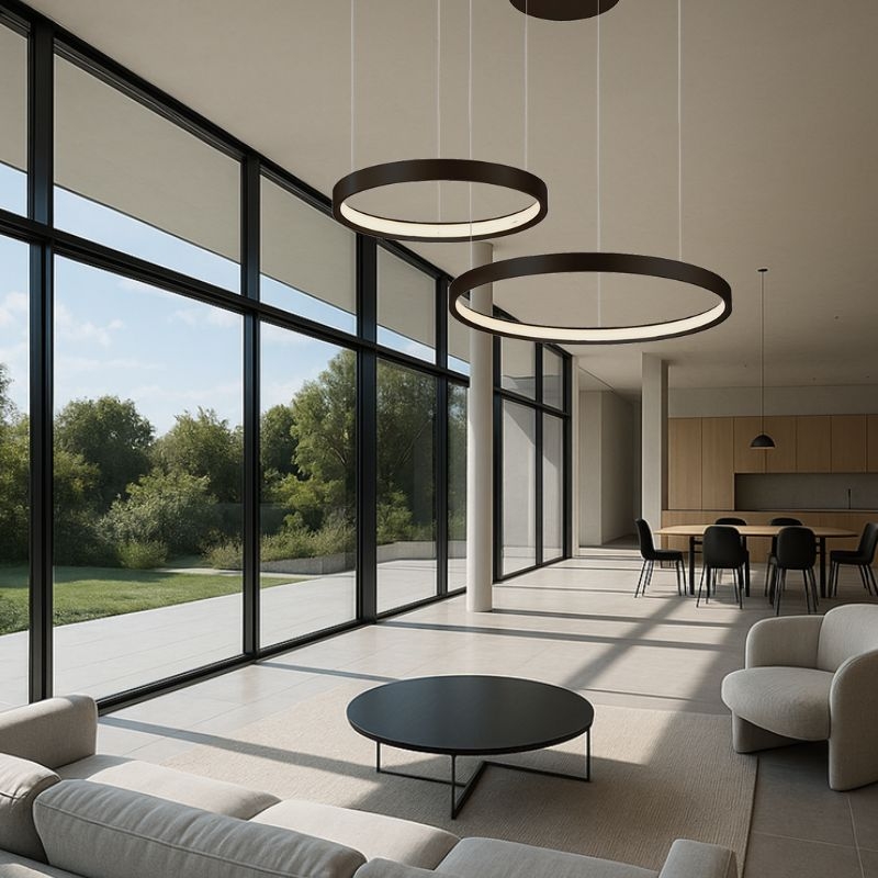 Grâce à ses deux large anneaux LED de 40cm et 60cm , cette suspension diffuse une lumière douce, homogène et chaleureuse, idéale pour illuminer une salle à manger, un salon ou un espace professionnel élégant.