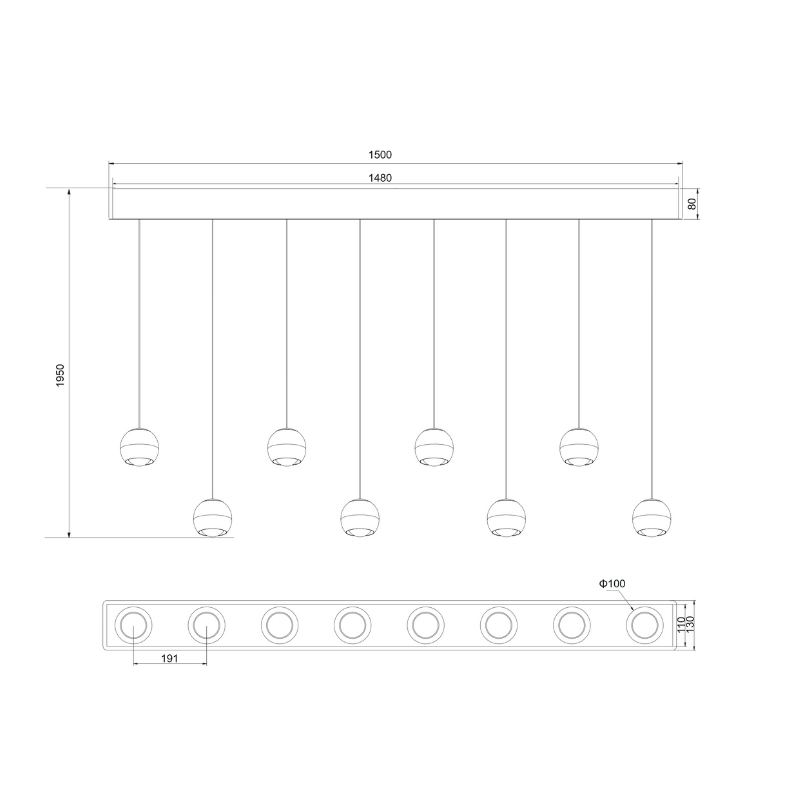 Avec son éclairage vers le haut et vers le bas, le luminaire suspendu à huit lumières crée une toile de fond lumineuse agréable qui invite à s'attarder et à profiter.