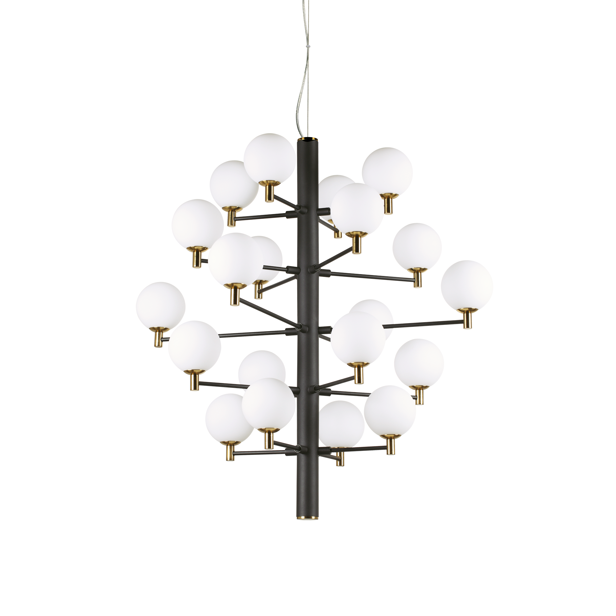Offrez à votre intérieur un véritable chef-d’œuvre lumineux avec ce luminaire design d’exception. Inspiré des créations architecturales contemporaines, ce lustre moderne à multiples globes opalins transforme instantanément n’importe quel espace en lieu spectaculaire. Son imposante structure en métal noir, élégamment rythmée par des sphères de verre blanc, crée un jeu de volumes unique qui attire tous les regards dès l’entrée.